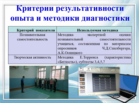 Для эффективной оценки результативности эксперимента мы использовали известные в практике методики диагностики, которые представлены на экране.