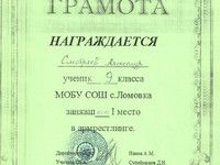 Диплом победителя конкурса по информатике Инфознайка 2020