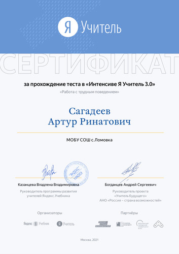 за прохождение теста в «Интенсиве Я Учитель 3.0»